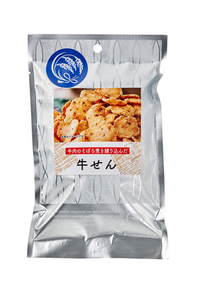 創業当時からのロングセラー商品。牛肉そぼろ煮を生地に練り込み、サクサクした食感のせんべいに仕上げました。肉の旨みとガーリック効かせた商品。おつまみ感覚でご賞味ください。味違いや複数の規格品あり。
