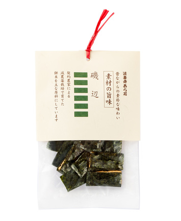 有明海産の焼海苔を贅沢に使いました。薄く焼いたあられが、海苔の香りを際立たせます。