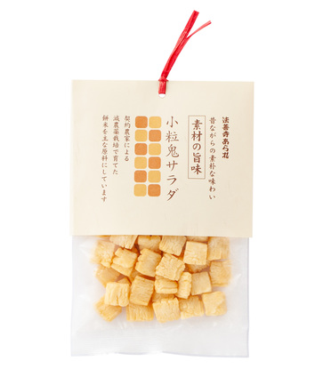 小型のブロック状のあられを、カリッとした歯ごたえのサラダ味に仕上げました。