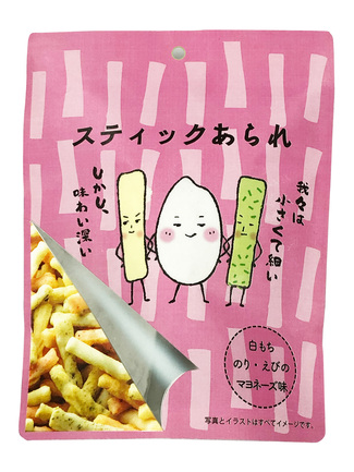 白もち、青のり、えびの三種類でステック状でサクッとマヨネーズ味で仕上げました。