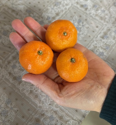 女性の手の平に小さい物でしたら3つ載ります。見た目は小粒、味は凝縮した風味。