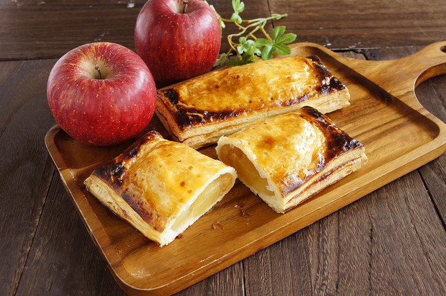 北海道産のりんごをたっぷりと包み込んだ、シナモン香るアップルパイです。表面に塗ったアプリコットジャムがアクセント!